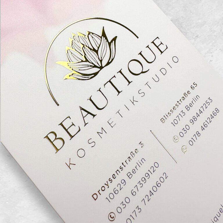 Exklusive Visitenkarte mit flüssigem Gold oder Silber veredelt und Softtouch Oberfläche