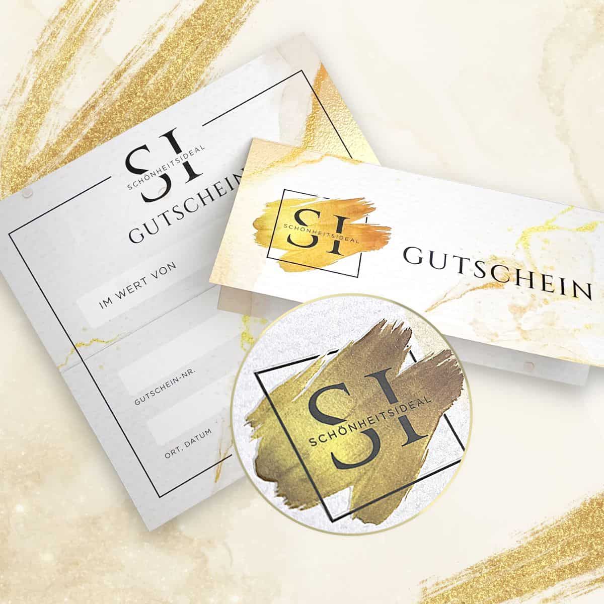 Exklusiver Gutschein / Geschenkgutschein mit flüssigem Gold oder flüssigem Silber veredelt