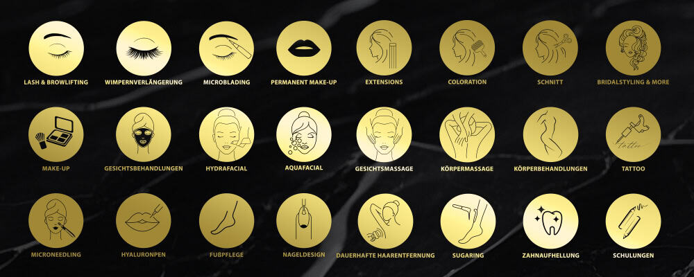 Es gibt vielfältige Möglichkeiten, deine Corporate Identity spielend leicht in die Außenwelt zu tragen, anstatt nur innerhalb deiner Räumlichkeiten zu glänzen. Durch unsere hochwertigen Icons, haben wir bereits einige Leistungen und Behandlungen innerhalb der Beautybranche in unserem Sortiment abgedeckt.
